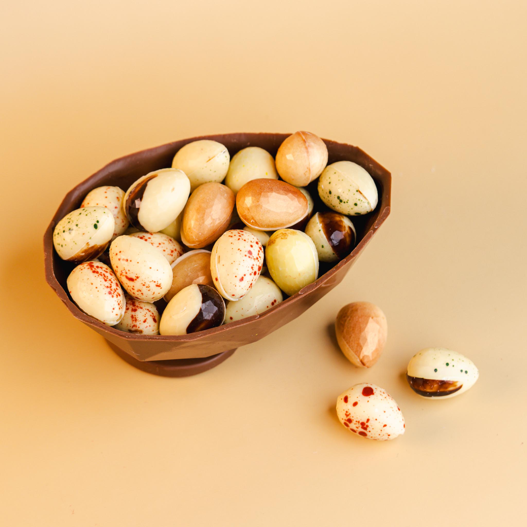 De gevulde paaseitjes bestaan uit een gevarieerde mix van smaken.